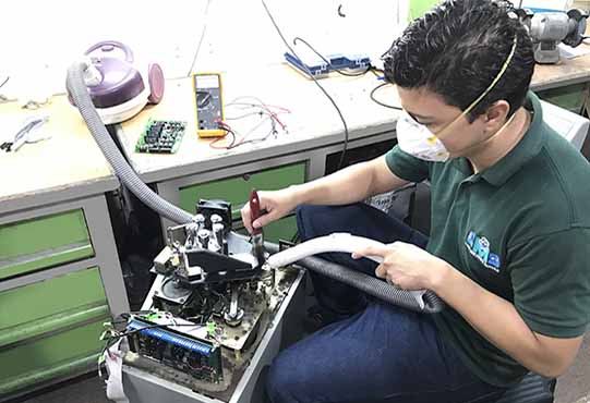 En caso de haber daños significativos como daños de tarjetas electrónicas, daños de cabezal o desgastes de piezas metálicas, se envía la maquina al taller para su reparación.